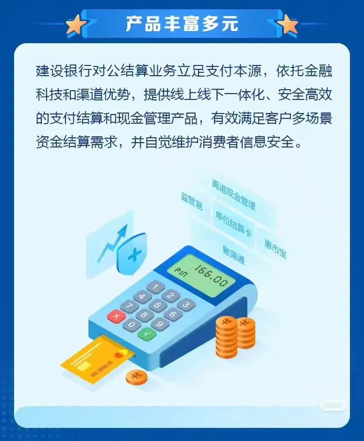 中國建設(shè)銀行始終將消費(fèi)者權(quán)益保護(hù)融入對公結(jié)算業(yè)務(wù)的每一個環(huán)節(jié),以實際行動增強(qiáng)金融消費(fèi)者的獲得感、幸福感和安全感。選擇建行對公結(jié)算業(yè)務(wù),企業(yè)將獲得更安全、更便捷、更優(yōu)惠的金融服務(wù),助力企業(yè)在發(fā)展道路上穩(wěn)步前行。